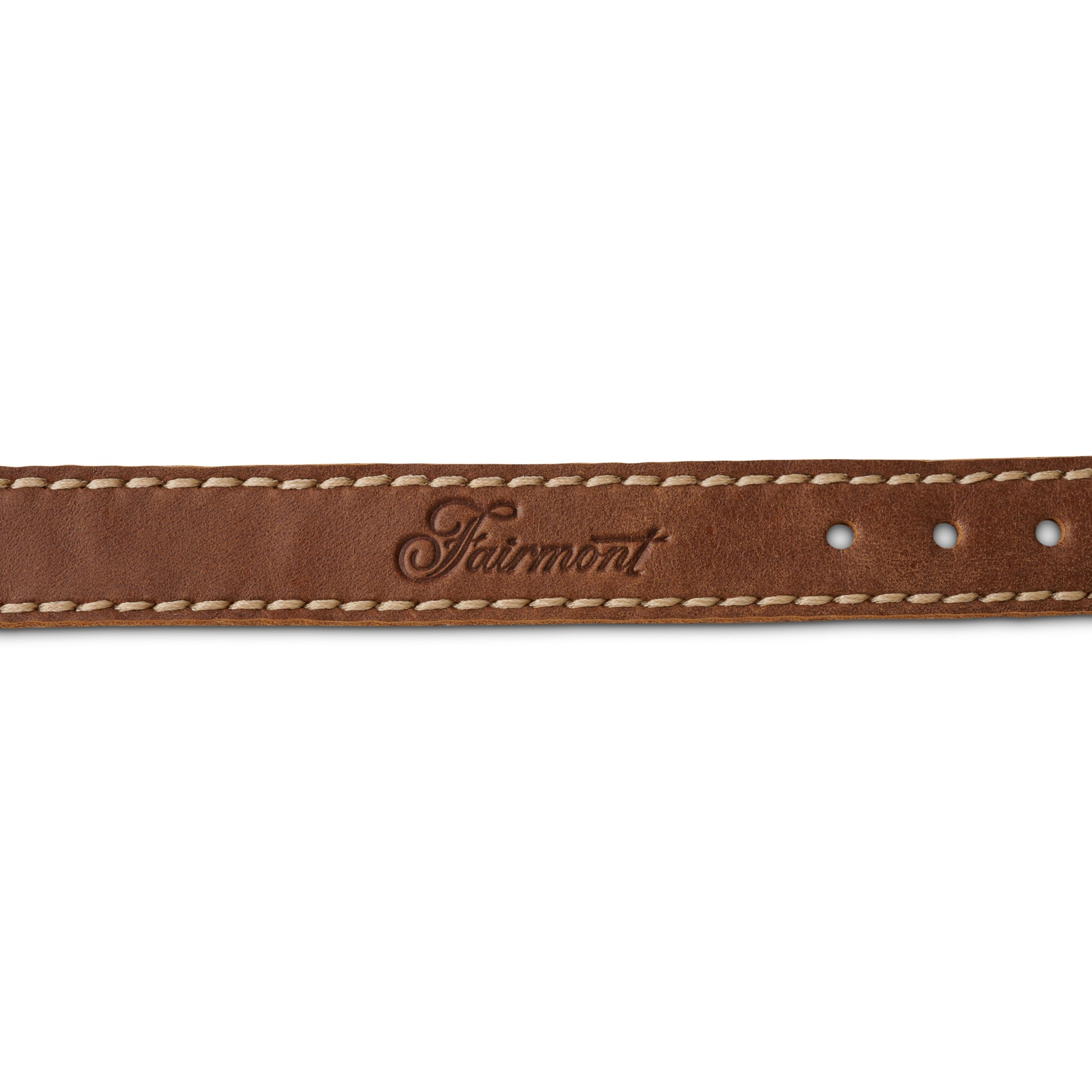 Choyez votreanimal de compagnie avec un style robuste digne d'un chien Fairmont. Le collier Roots en cuir italien véritable a été conçu pour Fairmont et fabriqué à la main au Canada. Disponible en plusieurs tailles pour convenir à tous les chiens et en deux couleurs pour plaire à tous les esthètes.