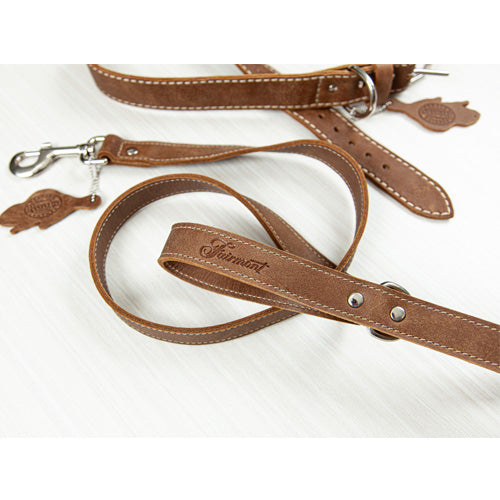 Choyez votre animal avec cette laisse robuste conçue pour Fairmont par Roots. La laisse en cuir italien véritable de Roots est conçue et fabriquée à la main au Canada. Nos ambassadeurs canins se promènent l'après-midi et font la sieste en portant nos colliers et laisses élégants.