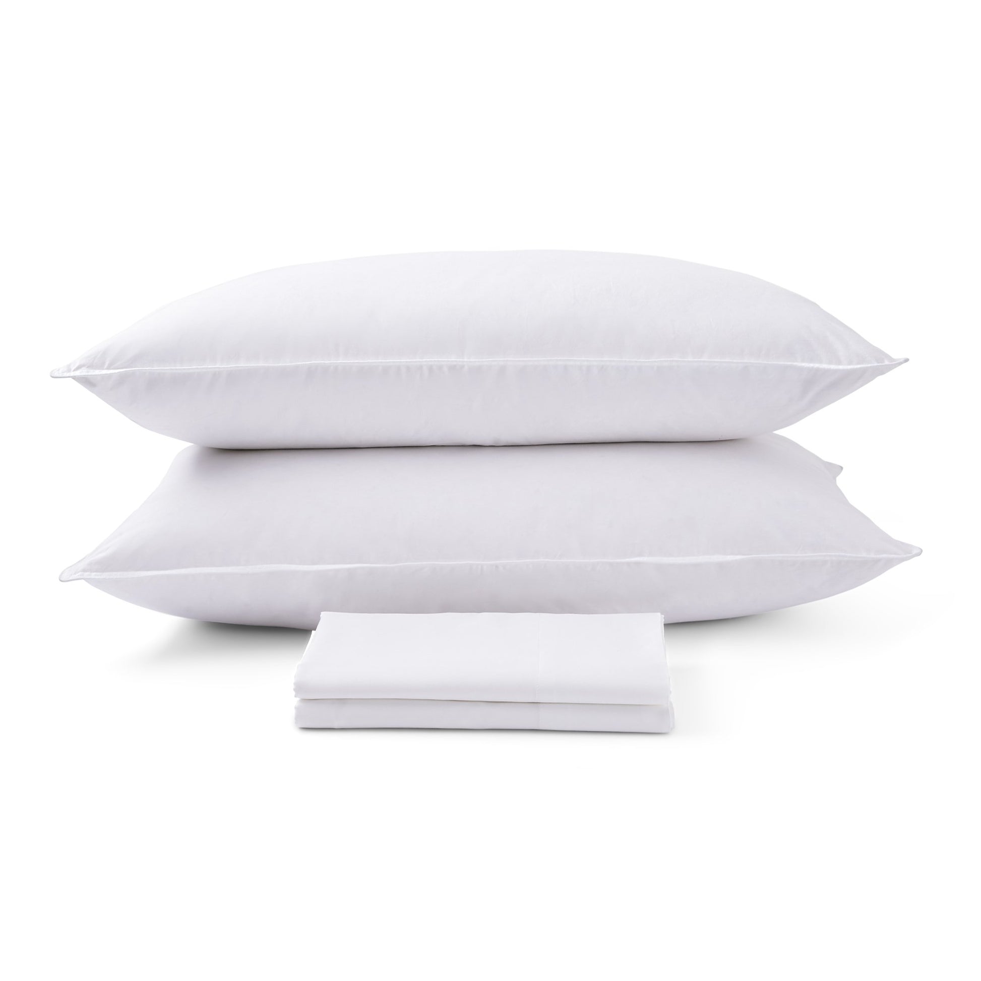 290 fils au pouce, housse blanche 100% coton Bords doublement cousus et passepoilés Construction à un compartiment, doublement couverte 100% polyester, antimicrobien et antibactérien Veuillez noter que nous n'acceptons pas les retours sur les oreillers. Toutes les ventes sont finales.