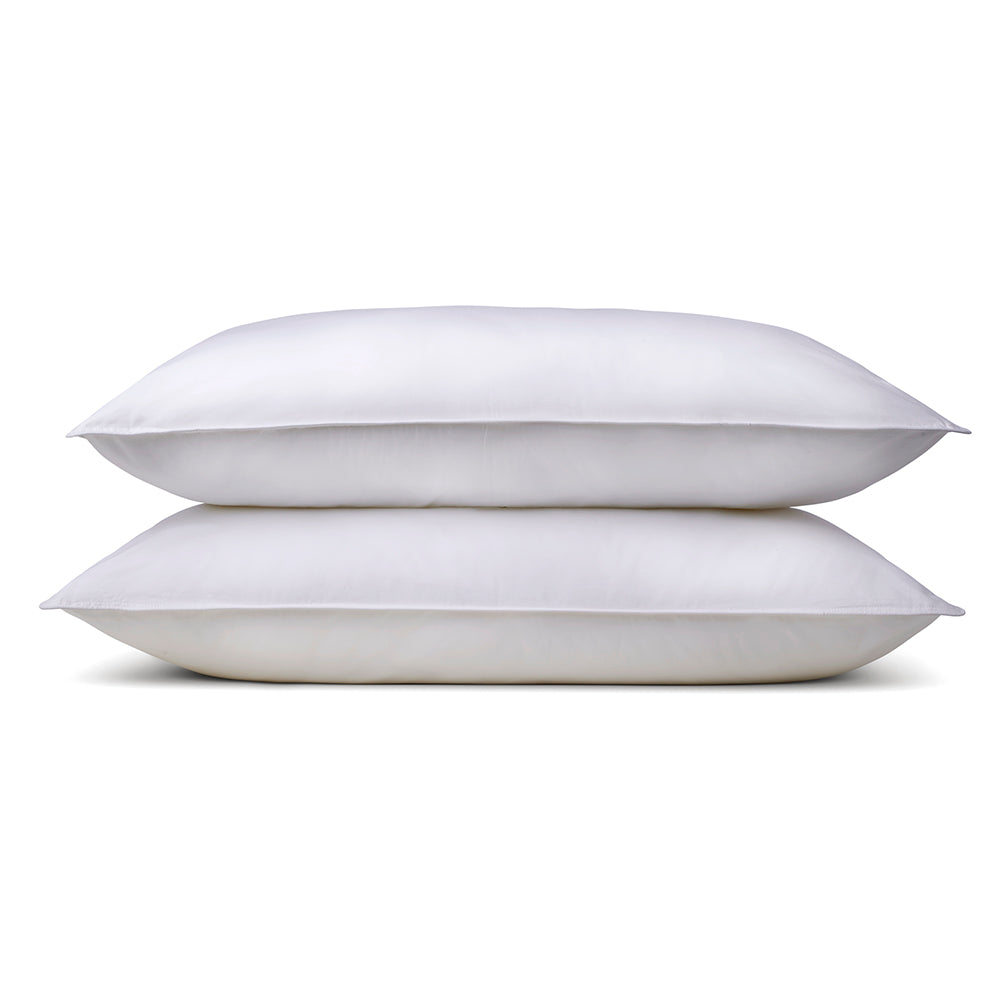 290 thread count, white 100% cotton cover Double-stitched and piped edges Single compartment construction, double covered 100% polyester, antimicrobial and antibacterial Please note that we do not accept returns on pillows. All sales are final.