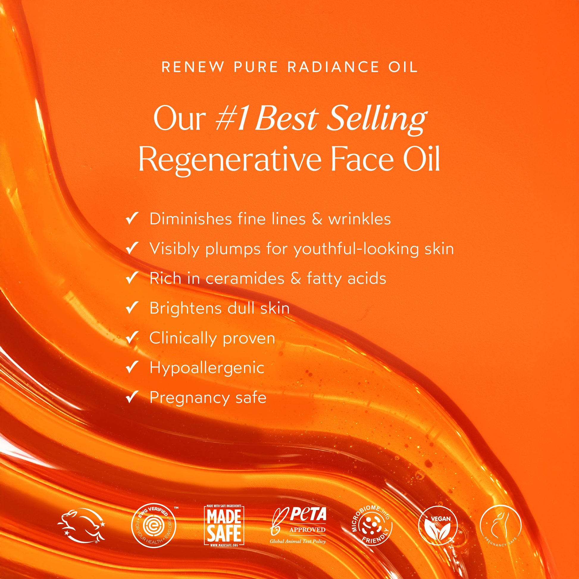 As we age, skin loses up to 65% of its ability to produce fatty acids, making the skin less plump, luminous, and resilient. That’s where Renew Pure Radiance Oil comes in. This award-winning and iconic face oil product is clinically proven to reduce the appearance of fine lines and wrinkles and increase hydration levels. A revolutionary blend of 14 biocompatible, nutrient-dense oils—rich in Omega 3, 6, and 9 fatty acids—as well as algae extract and astaxanthin help to deliver more hydrated, more vibrant, more visibly plump, youthful-looking skin.