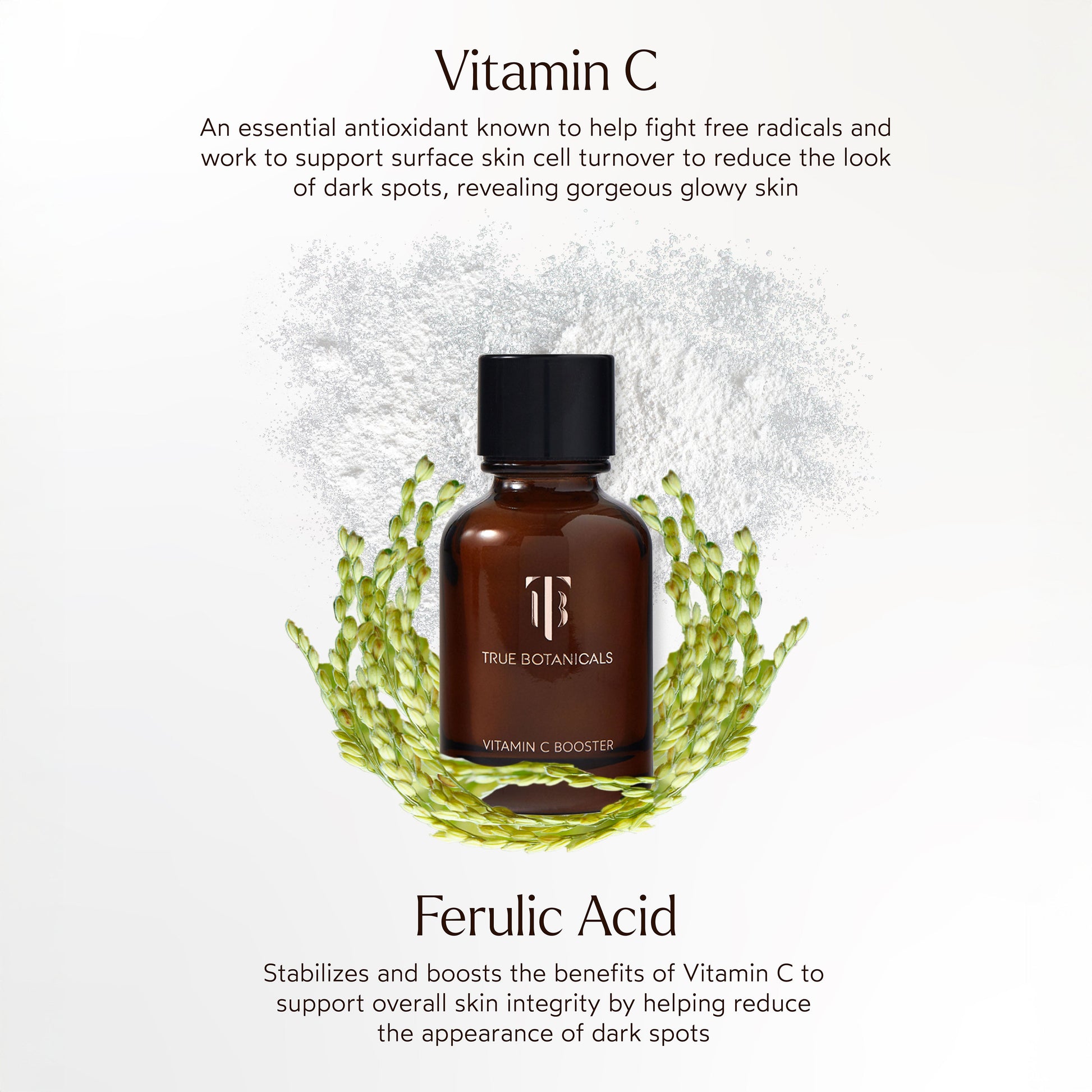 Dramatically give the look of brighter skin and help reduce the appearance of dark spots with this potent and effective Vitamin C powder for skin. This booster combines Vitamin C concentrate and Ferulic Acid to support cell turnover and protect overall skin integrity to reveal even-toned, smoother, and brighter-looking skin.